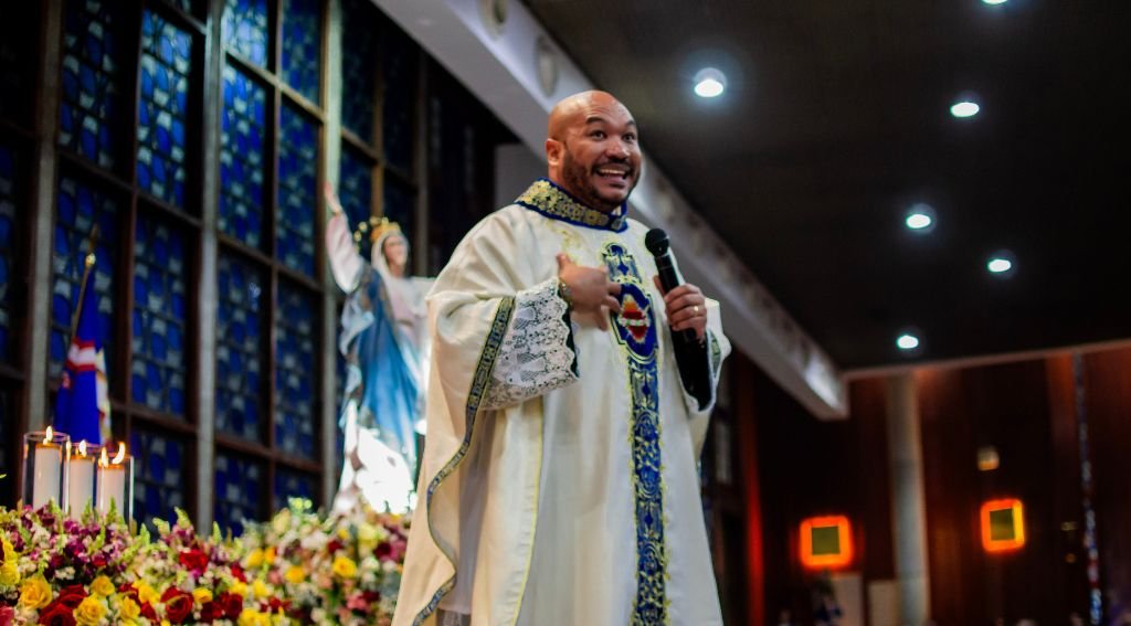 A Santa Missa foi presidida pelo Pe. Daniel Antônio, sacerdote paulista que, com sabedoria e fervor, guiou os fiéis em uma profunda reflexão sobre os milagres que Deus já realizou em nossas vidas, lembrando que é n’Ele que encontramos a força para sustentar nossa fé. Além disso, ressaltou que confiar em Maria significa encontrar um refúgio seguro diante das dificuldades da vida, pois como mãe amorosa e intercessora fiel, Maria está sempre pronta para ouvir as súplicas dos fiéis e socorrê-los nos momentos de angústia e incerteza. Ademais, enfatizou que “A Cruz é o único caminho para chegar a ressureição”.