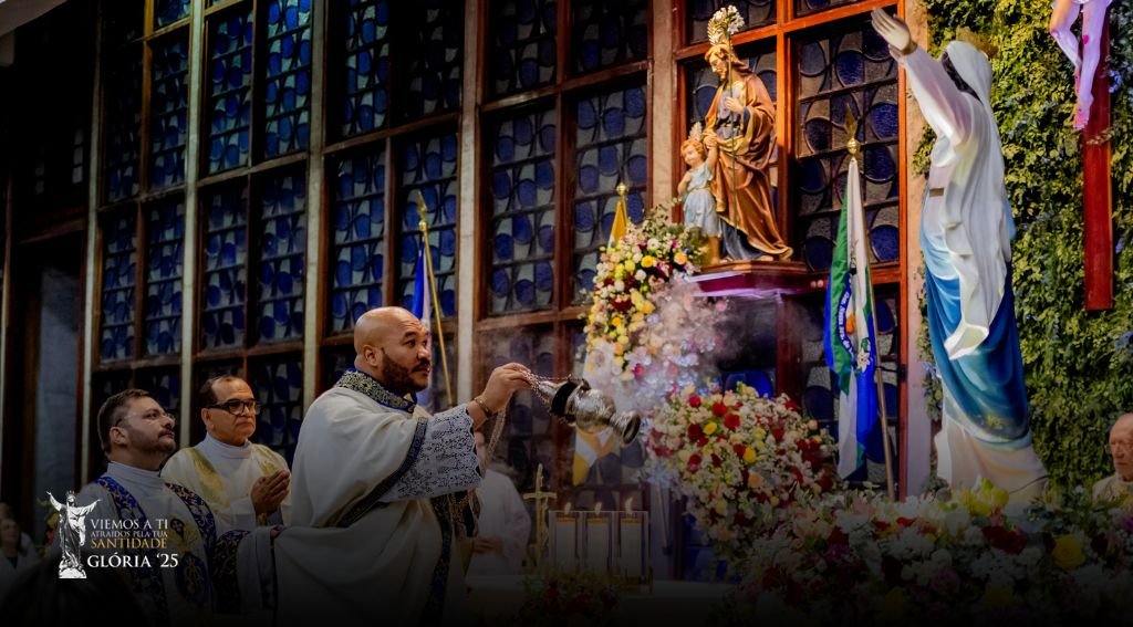 A celebração teve início de forma emocionante com a entrada solene da imagem de Nossa Senhora da Glória pela porta principal, acompanhada por uma delicada chuva de pétalas. Nossa padroeira, motivo central desta festa, foi reverenciada com grande alegria e devoção, marcando o começo de um momento especial para toda a comunidade.