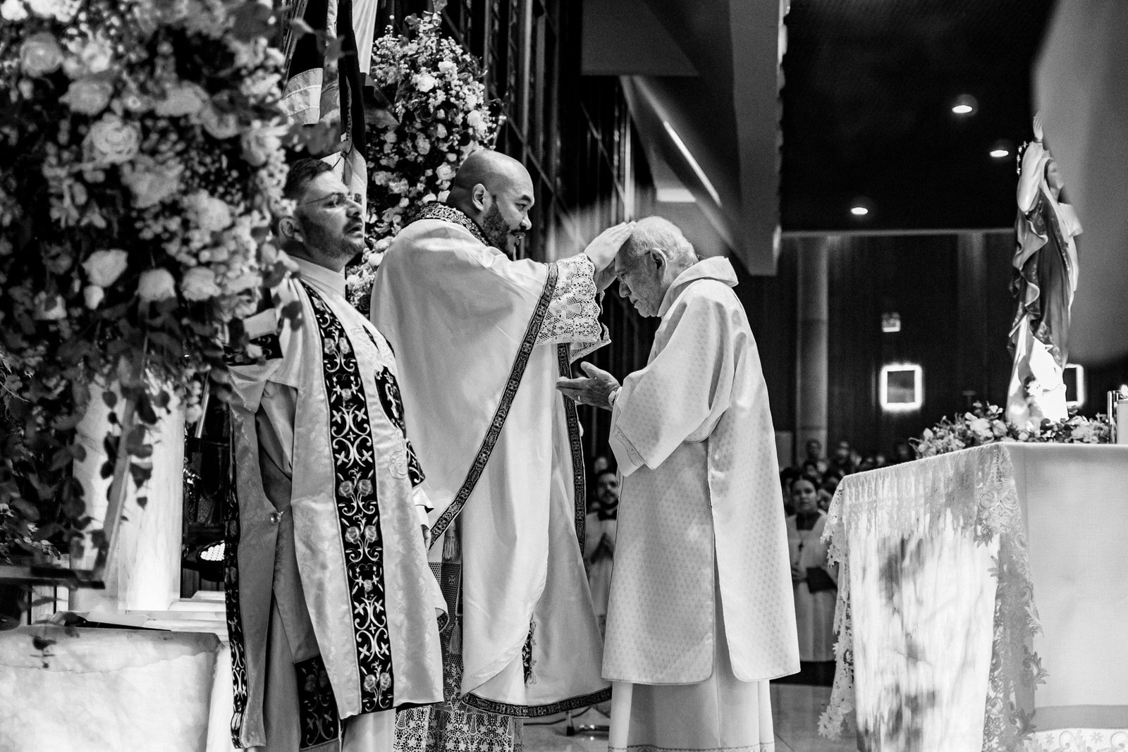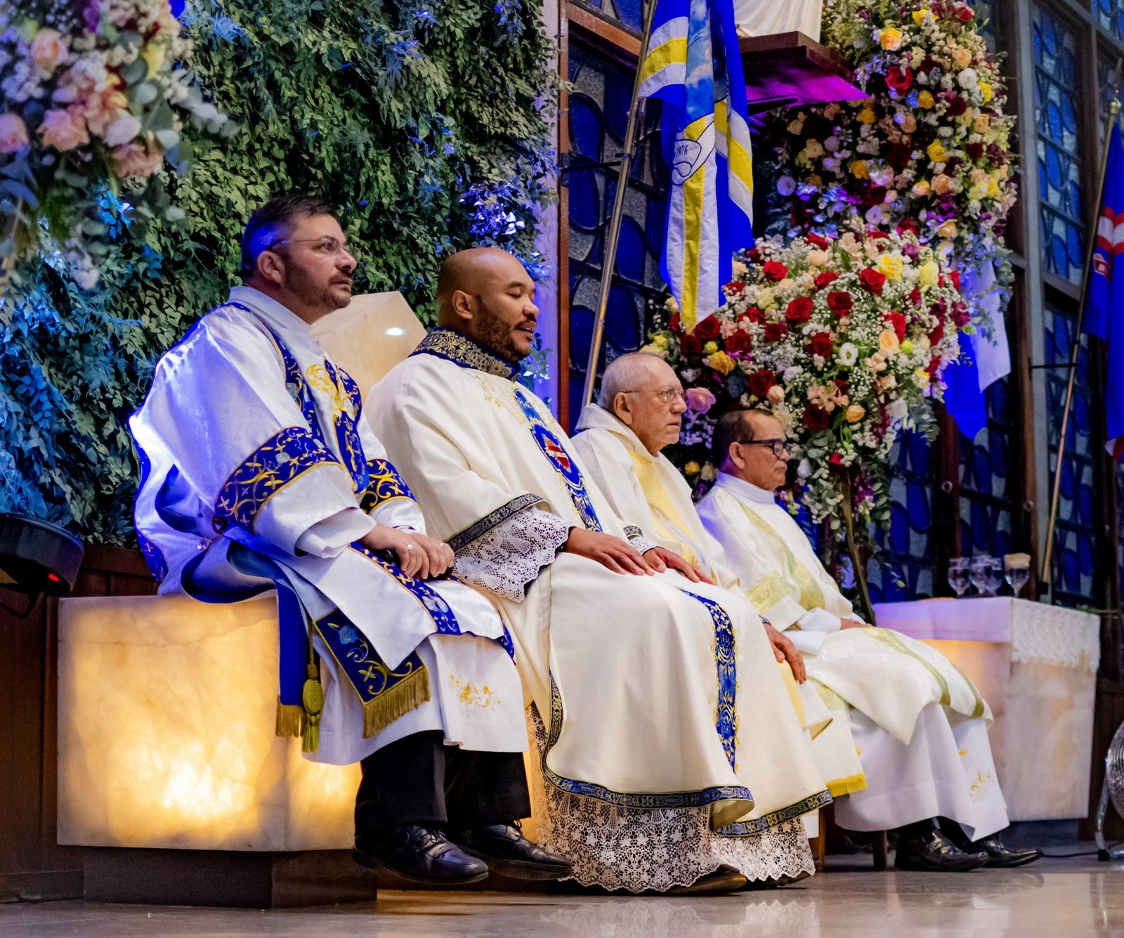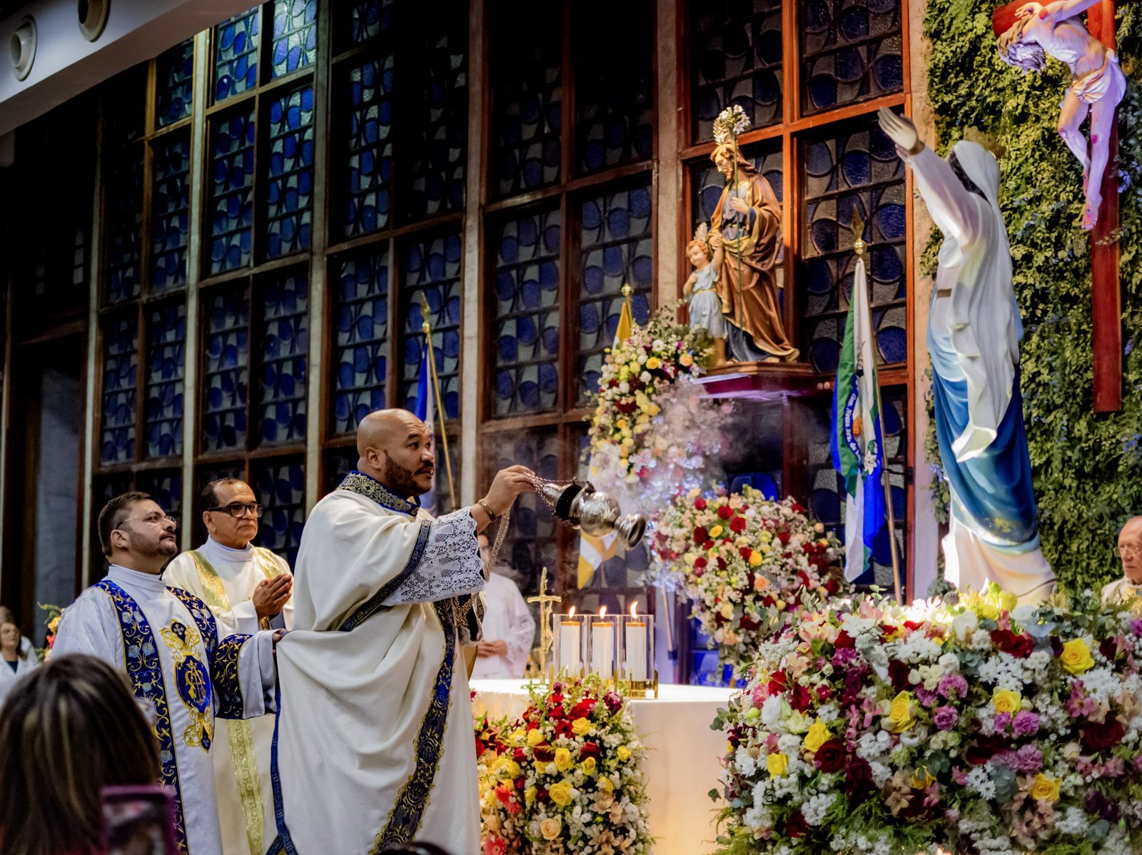 A celebração teve início de forma emocionante com a entrada solene da imagem de Nossa Senhora da Glória pela porta principal, acompanhada por uma delicada chuva de pétalas. Nossa padroeira, motivo central desta festa, foi reverenciada com grande alegria e devoção, marcando o começo de um momento especial para toda a comunidade.
