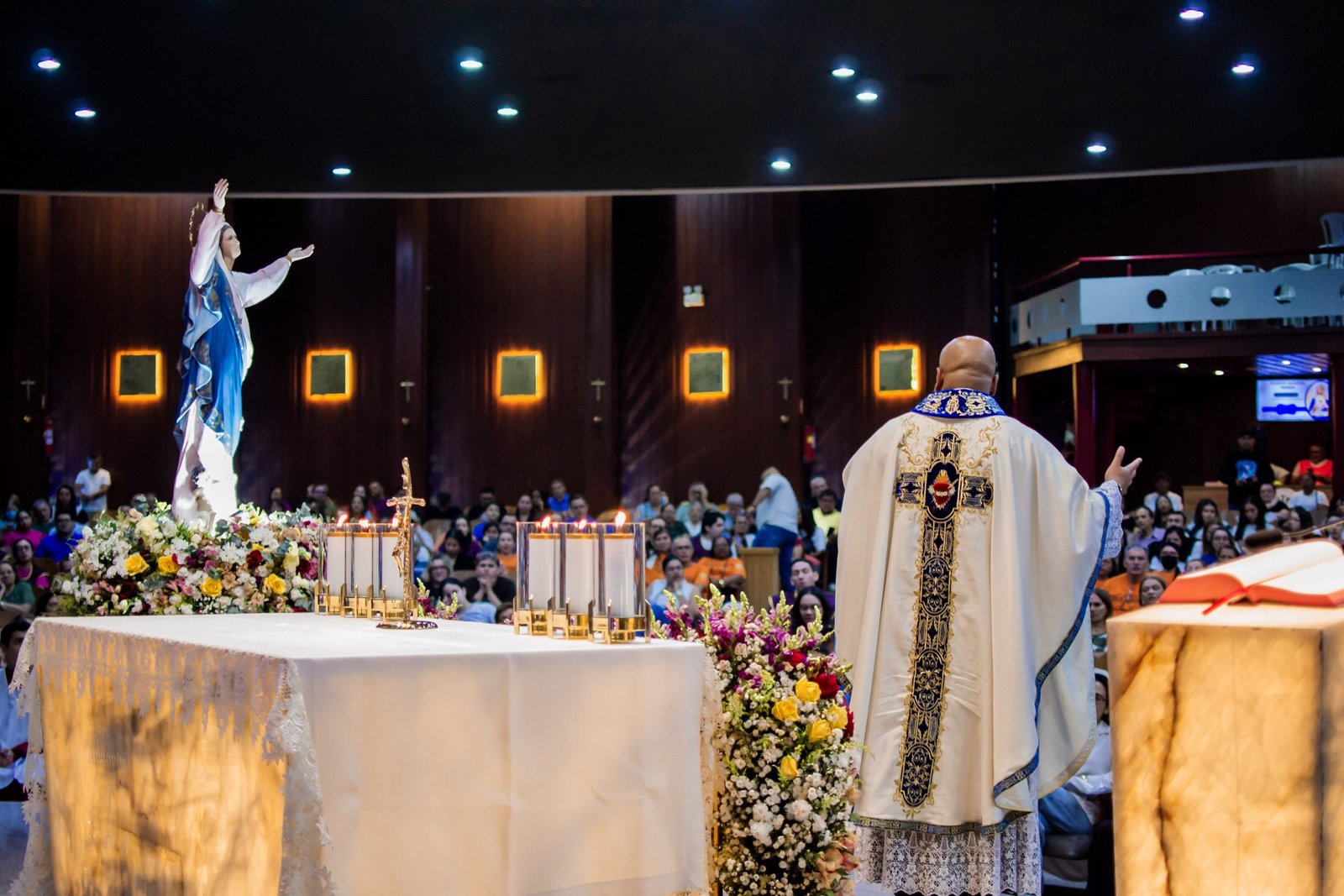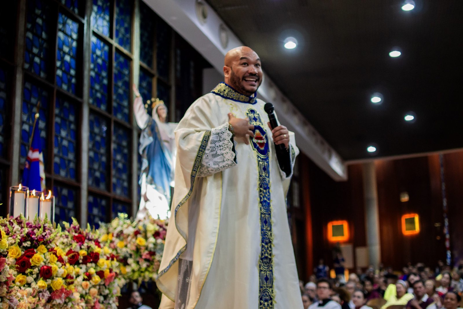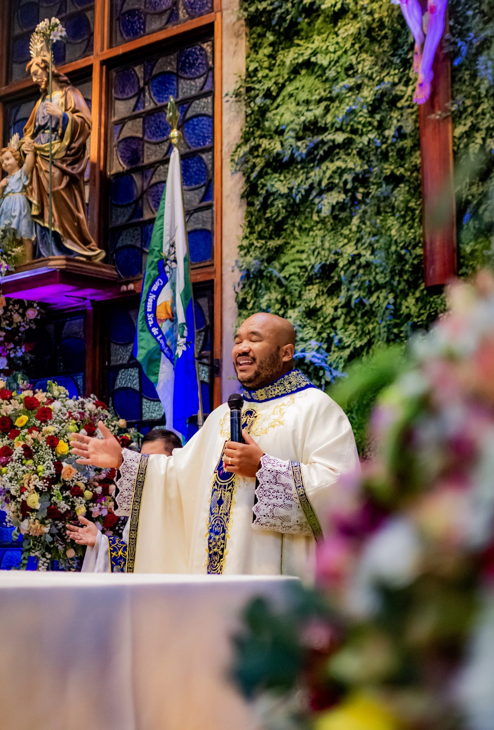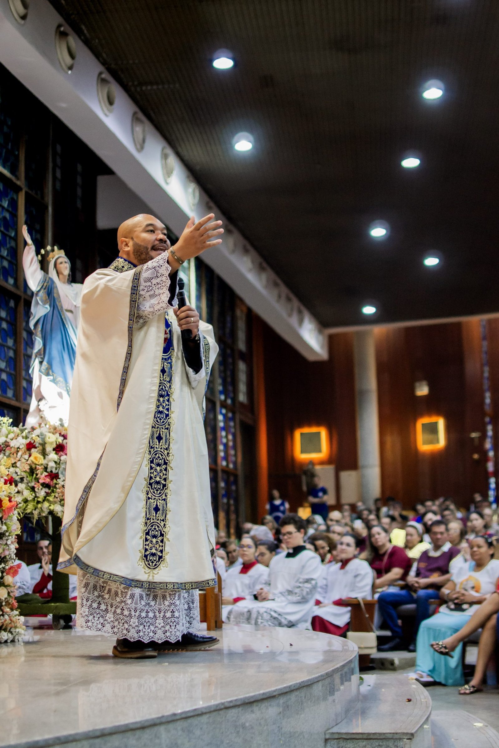 A Santa Missa foi presidida pelo Pe. Daniel Antônio, sacerdote paulista que, com sabedoria e fervor, guiou os fiéis em uma profunda reflexão sobre os milagres que Deus já realizou em nossas vidas, lembrando que é n’Ele que encontramos a força para sustentar nossa fé. Além disso, ressaltou que confiar em Maria significa encontrar um refúgio seguro diante das dificuldades da vida, pois como mãe amorosa e intercessora fiel, Maria está sempre pronta para ouvir as súplicas dos fiéis e socorrê-los nos momentos de angústia e incerteza. Ademais, enfatizou que “A Cruz é o único caminho para chegar a ressureição”.