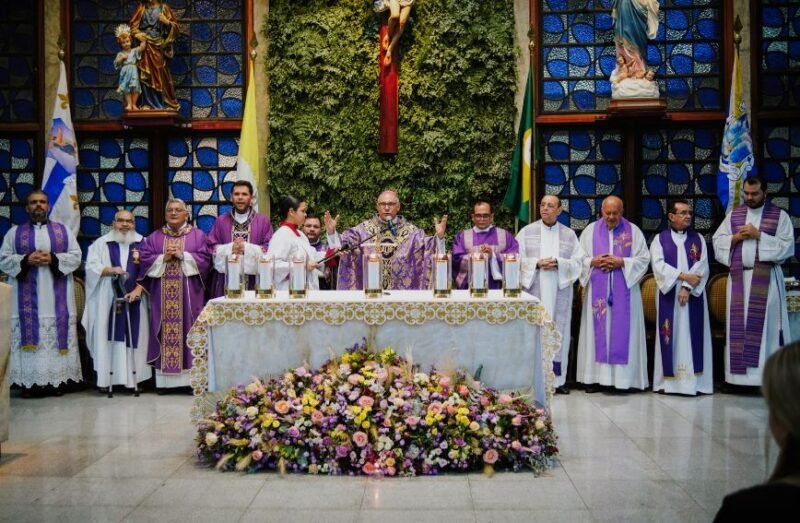 Logo no início da celebração, a comunidade foi conduzida a um profundo mergulho espiritual por meio do momento de confissão, sinal de reconciliação e encontro com a misericórdia de Deus. Em seguida, as leituras proclamadas iluminaram os corações, preparando cada fiel para acolher a Palavra viva que orienta, fortalece e transforma a caminhada cristã.