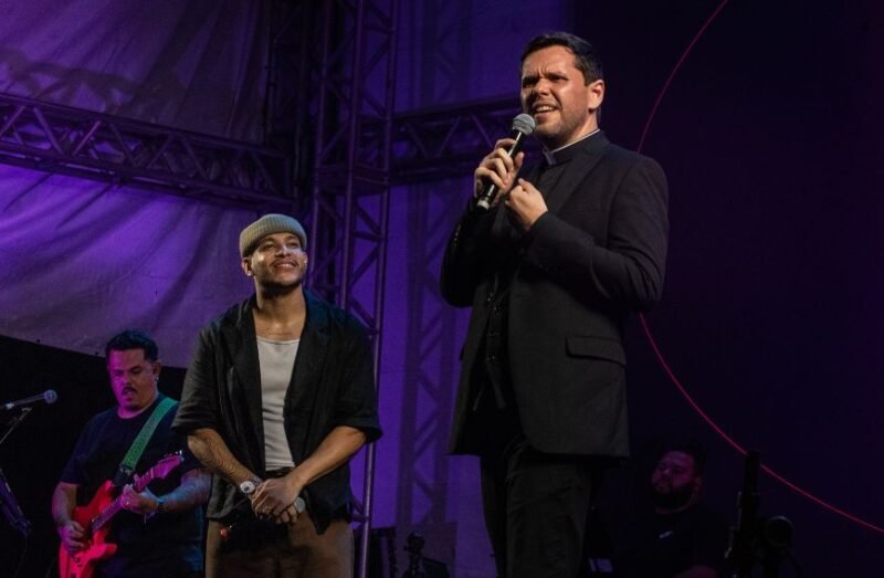 Após a celebração, a paróquia viveu um momento de alegria e confraternização com o show de Flávio Vitor Jr., que trouxe um momento de profunda conexão com Cristo. Com um repertório marcado por canções de fé e esperança, o artista envolveu a comunidade, que cantou unida sucessos como “Enquanto Eu Te Adoro” e “Príncipe da Paz”, criando um clima de emoção e adoração ao Senhor.