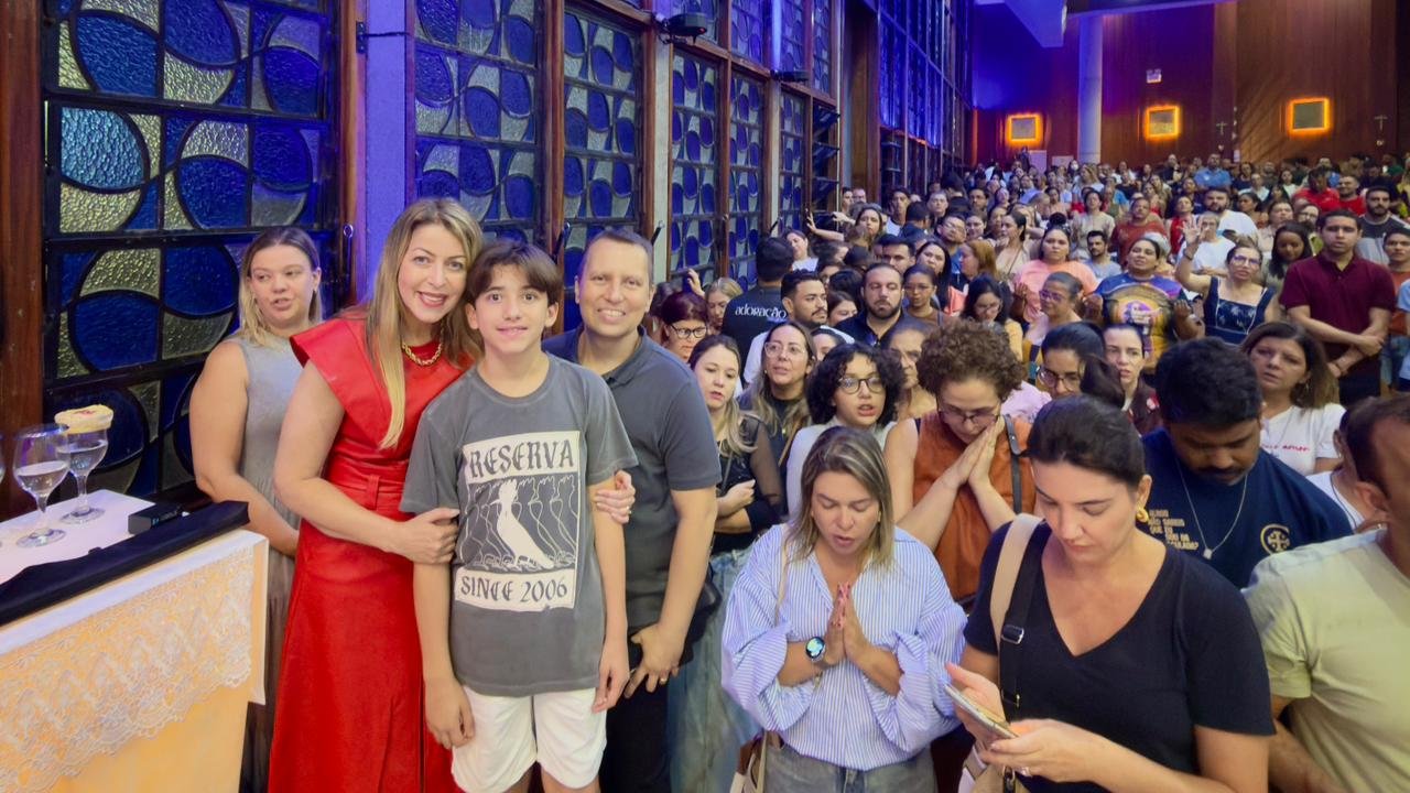 Em sua fala, Adriana destacou o privilégio de estar na Paróquia da Glória em sua penúltima missão de 2025, acompanhada do esposo e do filho. Na ocasião, ela testemunhou a força da oração em sua vida e família: “Nós que adoramos a Deus não estamos imunes às dificuldades, mas tudo pode ser mudado pela força da oração quando, no centro da nossa vida, não estão os problemas, as riquezas ou os bens, mas Deus. A oração venceu o câncer do meu esposo”.