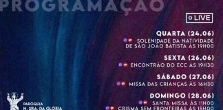 Programação da semana da Paróquia Nossa Senhora da Glória