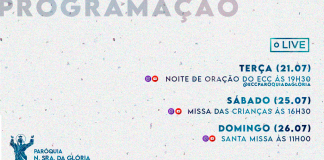Programação da semana na Paróquia Nossa Senhora da Glória