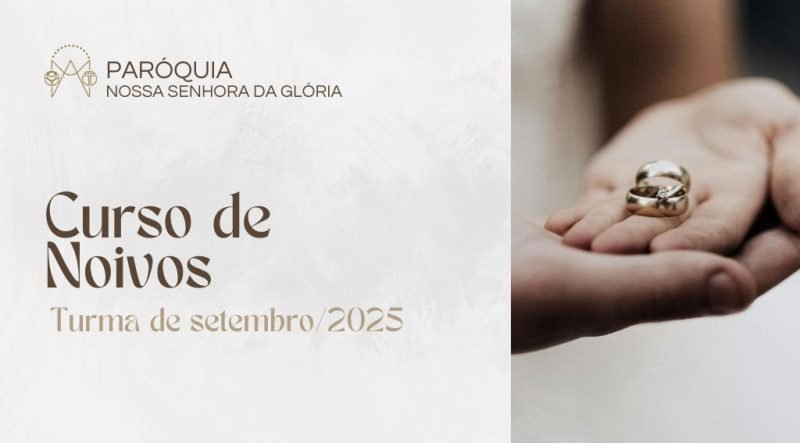 A Paróquia Nossa Senhora da Glória informa que estão abertas as inscrições online para o Curso de Noivos – turma de setembro de 2025. O curso acontecerá nos dias 20 e 21 de setembro, na sala 1 do Centro Pastoral Pe. Alberto Castelo.